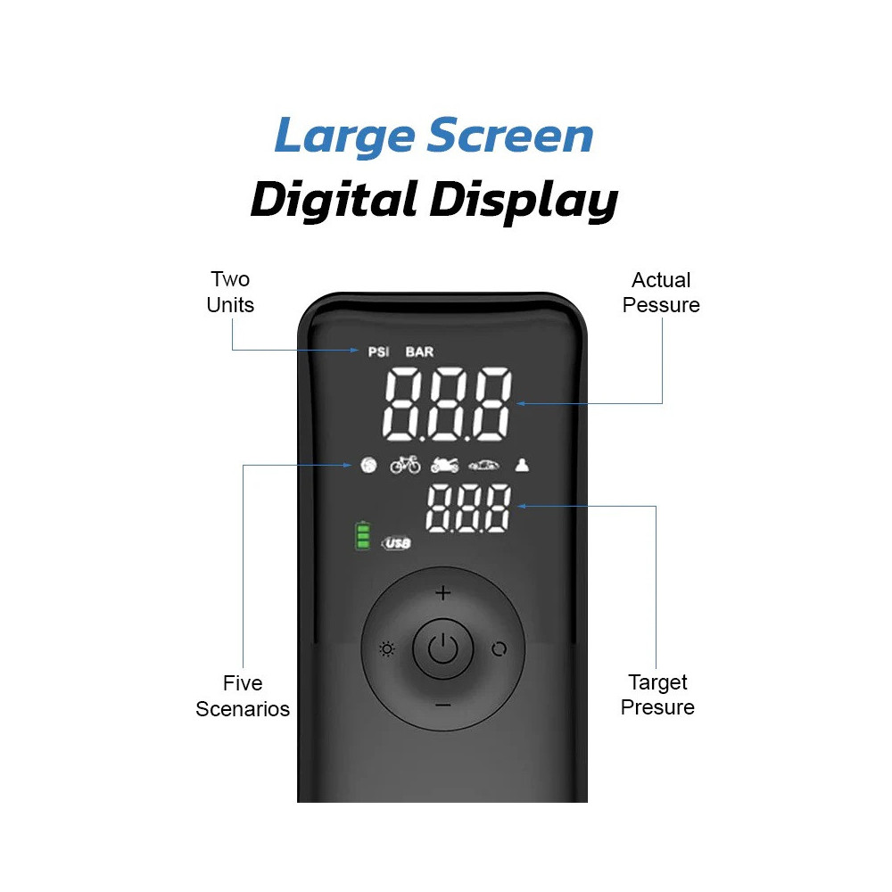 prémiový elektrický kompresor AIR-002 • maximálny tlak 150 PSI • 20 minút nepretržitej prevádzky • dlhá výdrž batérie