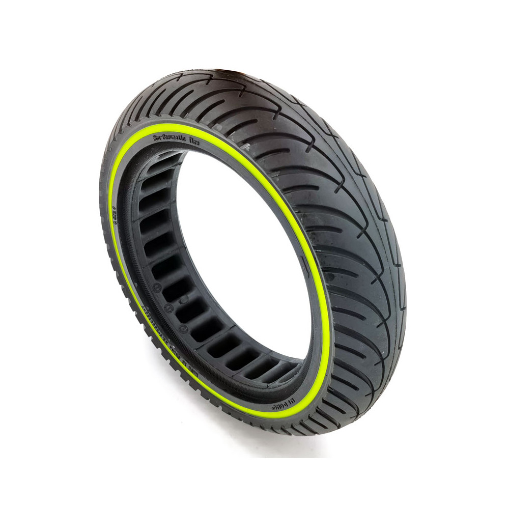 Okrem toho vďaka svojej optimálnej tuhosti mierne zvyšuje dojazd a komfort pri používaní kolobežky, pretože už nie je potrebné neustále kontrolovať mieru nahustenia pneumatiky.