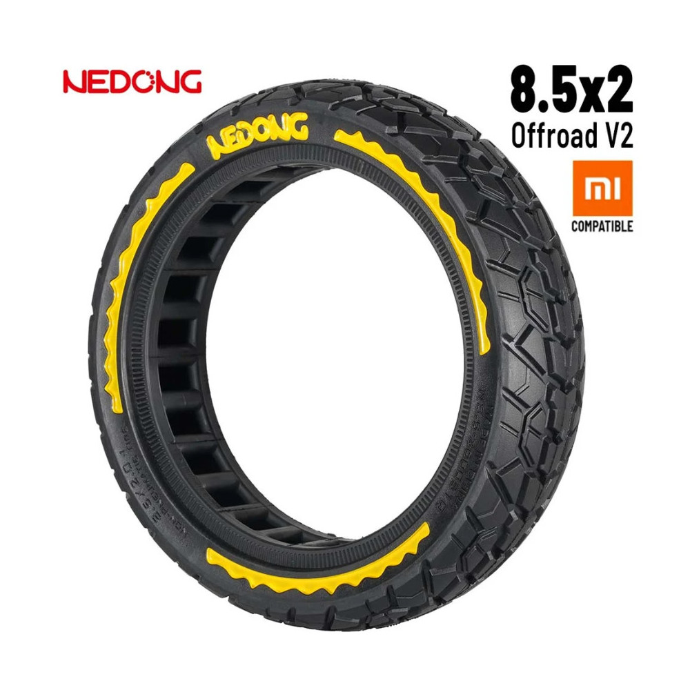 Kvalitná ultraľahká bezdušová celogumenná pneumatika Nedong s lepším pružením pre väčší komfort z jazdy • offroad verzia V2 • rozmer 8,5x2 • kompatibilita Xiaomi M365 / Pro / 1S / Essential / Pro 2 / Mi 3, Sencor ONE, City Boss RS250 / RS350, MS Energy m10, Aprilia eSRZ